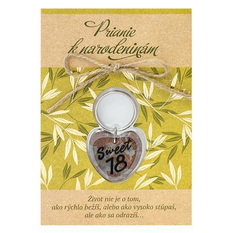 Speciální přání s dárkem. Přání obsahuje obálku, dárek - klíčenku s oboustranným potiskem a věnování. Slovenský text uvnitř přání: "Nech je Tvoj život ako sen... Najkrajší z krásnych, radostný a hlavne šťastný! Všetko najlepšie!"