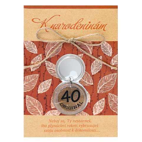 K narodeninám - speciální přání s dárkem. Karta obsahuje obálku, dárek - klíčenku s oboustranným potiskem a věnování. Slovenský text uvnitř přání: "Prajem Ti veľa šťastia, zdravia, lásky, pohody a veľa krásnych dní plných príjemných maličkostí... Všetko najlepšie!"