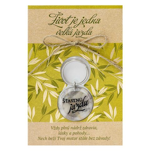 Život je jedna veľká jazda - speciální přání s dárkem. Karta obsahuje obálku, dárek - klíčenku s oboustranným potiskem a věnování. Slovenský text uvnitř přání: "Veľa šťastných kilometrov praje"