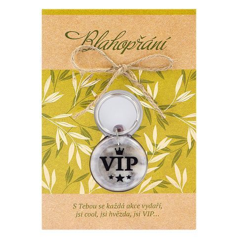 Blahopřání - blahopřání s věnováním a s klíčenkou, která má oboustranní potisk. Součástí balení je kraftová obálka. Text uvnitř přáníčka: máš svůj styl, udáváš trendy, posílám lajky na Tvoje selfie:) Možná Tě to překvapí, ale pro mě jsi prostě VIP! Všechno nejlepší!