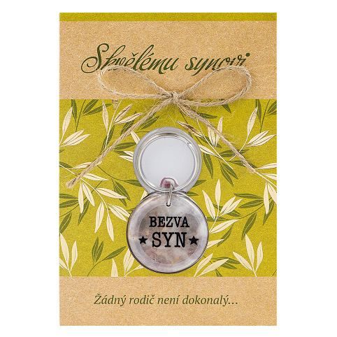 Skvělému synovi - blahopřání s věnováním a s klíčenkou, která má oboustranní potisk. Součástí balení je kraftová obálka. Text uvnitř přáníčka pokračuje k první straně: Ale při pohledu na Tebe mám pocit, že se mi v životě opravdu něco povedlo:)