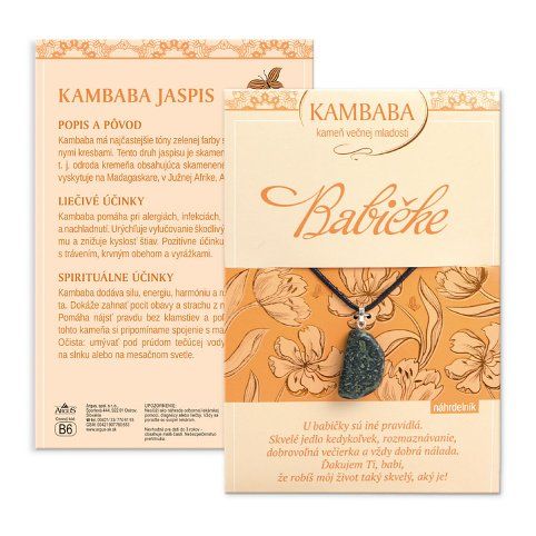 Babičke (slovensky) - speciální přání s dárkem. Karta obsahuje dárek – léčivý kámen a věnování. Zadní strana přání popisuje charakteristiku, původ kamene, léčivé a spirituální účinky. Přání neobsahuje obálku, je možné si ji doobjednat v poznámce k objednávce.