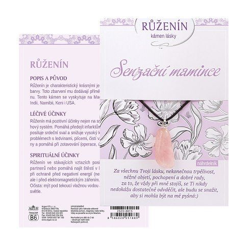 Senžační mamince - jedinečné přání s dárkem, léčivým kamenem a věnováním. Na zadní straně přání najdete charakteristiku léčivého kamene - popis a původ, léčivé účinky a také jeho spirituální účinky.