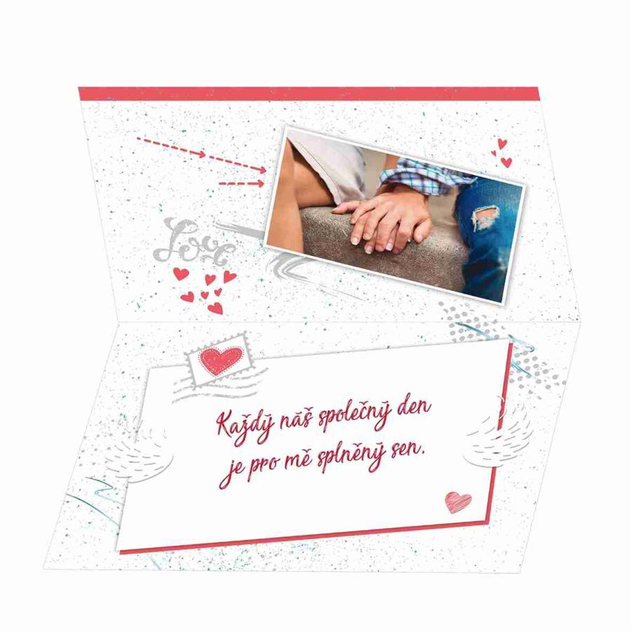 Blahopřání - Valentýnský pozdrav. Text uvnitř přánička. Součástí přání je také barevně sladěná obálka. Originální technologie zpracování od společnosti ARGUS - "Na detailu záleží!"