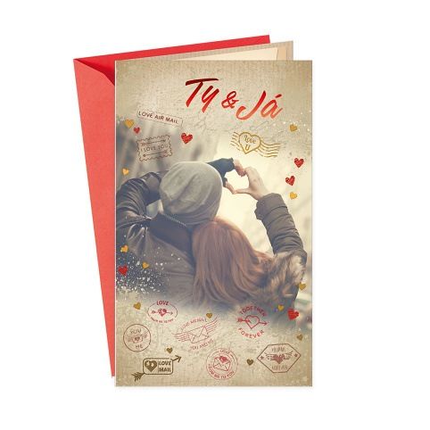 Blahopřání - Valentýnský pozdrav. Text uvnitř přánička. Součástí přání je také barevně sladěná obálka. Originální technologie zpracování od společnosti ARGUS - "Na detailu záleží!"