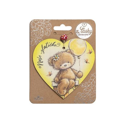 Krásný dřevěný dárek pro ty, které máte rádi. Překližkové dřevěné srdíčko s jednostranným potiskem zavěšené na šňůrce s korálkem. Zavěšeno na kraftové hlavičce, na kterou z druhé strany můžete napsat své věnování osobě, které ho z lásky chcete věnovat. ARGUS -"z lásky darované".