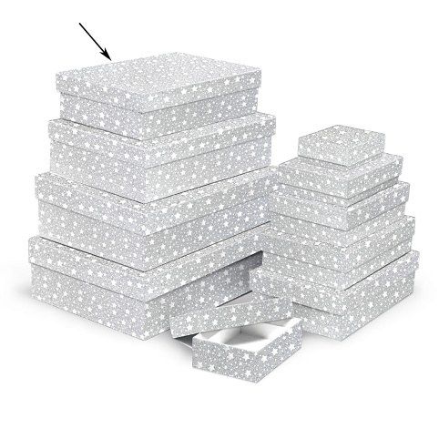 Stylová dárková krabice s víkem pro ozdobné zabalení jakýchkoliv dárků. Je perfektním řešením balení pro drobné předměty, ale i větší dary. Vhodná nejen na vánoční dárky, ale také k narozeninám, svátku, na různé oslavy nebo svatby. Slouží také jako krásná interiérová dekorace. Papírová krabička je pevná a kvalitní.