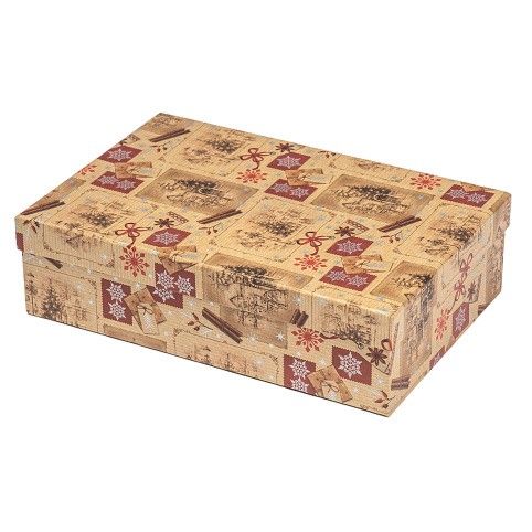Stylová dárková krabice s víkem pro ozdobné zabalení jakýchkoliv dárků. Je perfektním řešením balení pro drobné předměty, ale i větší dary. Vhodná nejen na vánoční dárky, ale také k narozeninám, svátku, na různé oslavy nebo svatby. Slouží také jako krásná interiérová dekorace. Papírová krabička je pevná a kvalitní.