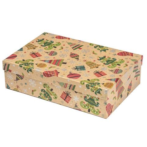 Stylová dárková krabice s víkem pro ozdobné zabalení jakýchkoliv dárků. Je perfektním řešením balení pro drobné předměty, ale i větší dary. Vhodná nejen na vánoční dárky, ale také k narozeninám, svátku, na různé oslavy nebo svatby. Slouží také jako krásná interiérová dekorace. Papírová krabička je pevná a kvalitní.