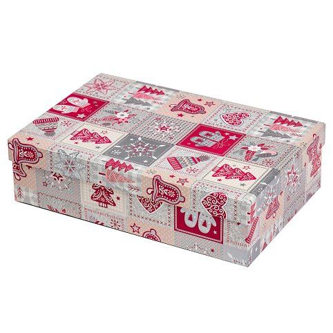 Stylová dárková krabice s víkem pro ozdobné zabalení jakýchkoliv dárků. Je perfektním řešením balení pro drobné předměty, ale i větší dary. Vhodná nejen na vánoční dárky, ale také k narozeninám, svátku, na různé oslavy nebo svatby. Slouží také jako krásná interiérová dekorace. Papírová krabička je pevná a kvalitní.