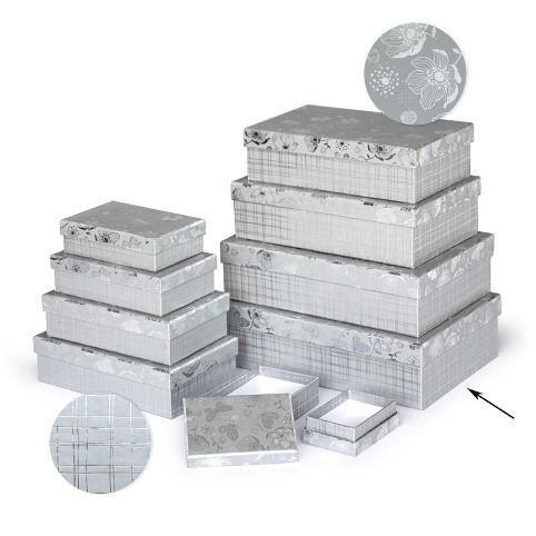Nádherní papírová krabice ve tvaru obdélníka se stříbrnou ráži z dílny ARGUSu. Vhodná nejen k zabalení dárků, ale také jako dekorace do bytu a odkládací prostor pro různé drobnosti v poličkách vašeho domova.