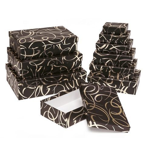 Set dárkových krabic různých velikostí.