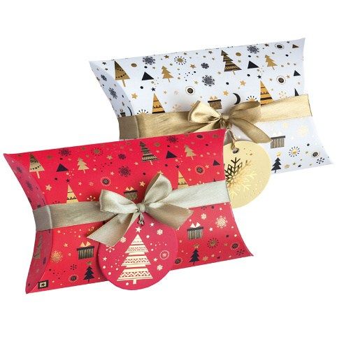 Stylová dárková skládací krabice se stužkou a přívěskem pro ozdobné zabalení dárků. Je perfektním řešením balení pro drobné předměty, ale i větší dary. Vhodná nejen na vánoční dárky, ale také k narozeninám, svátku, na různé oslavy nebo svatby. Slouží také jako krásná interiérová dekorace. Balení obsahuje 2 ks dárkové krabičky (1 ks z každé barvy/motivu).