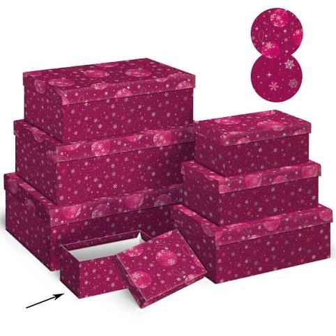 Stylová dárková krabice s víkem pro ozdobné zabalení jakýchkoliv dárků. Je perfektním řešením balení pro drobné předměty, ale i větší dary. Vhodná nejen na vánoční dárky, ale také k narozeninám, svátku, na různé oslavy nebo svatby. Slouží také jako krásná interiérová dekorace. Papírová krabička je pevná a kvalitní.