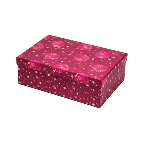 Stylová dárková krabice s víkem pro ozdobné zabalení jakýchkoliv dárků. Je perfektním řešením balení pro drobné předměty, ale i větší dary. Vhodná nejen na vánoční dárky, ale také k narozeninám, svátku, na různé oslavy nebo svatby. Slouží také jako krásná interiérová dekorace. Papírová krabička je pevná a kvalitní.