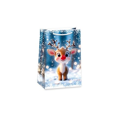 Vánoční papírová dárková taška s originálním designem. * vyrobená z kvalitního pevného přírodního papíru pro rychlé a praktické zabalení dárků všech velikostí* kvalita zpracování zaručuje dostatečnou pevnost proti protržení dna nebo odtržení oušek