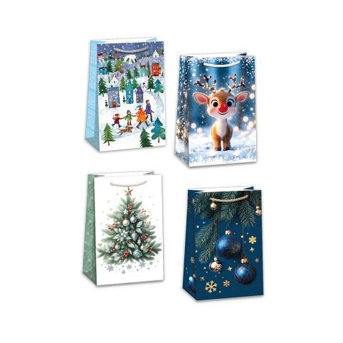 Vánoční papírová dárková taška s originálním designem. * vyrobená z kvalitního pevného přírodního papíru pro rychlé a praktické zabalení dárků všech velikostí* kvalita zpracování zaručuje dostatečnou pevnost proti protržení dna nebo odtržení oušek*