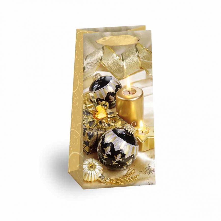 Lesklá vánoční papírová dárková taška s originálním designem. Vyrobená z kvalitního pevného papíru pro rychlé a praktické zabalení dárků všech velikostí. Kvalita zpracování zaručuje dostatečnou pevnost proti protržení dna nebo odtržení oušek.