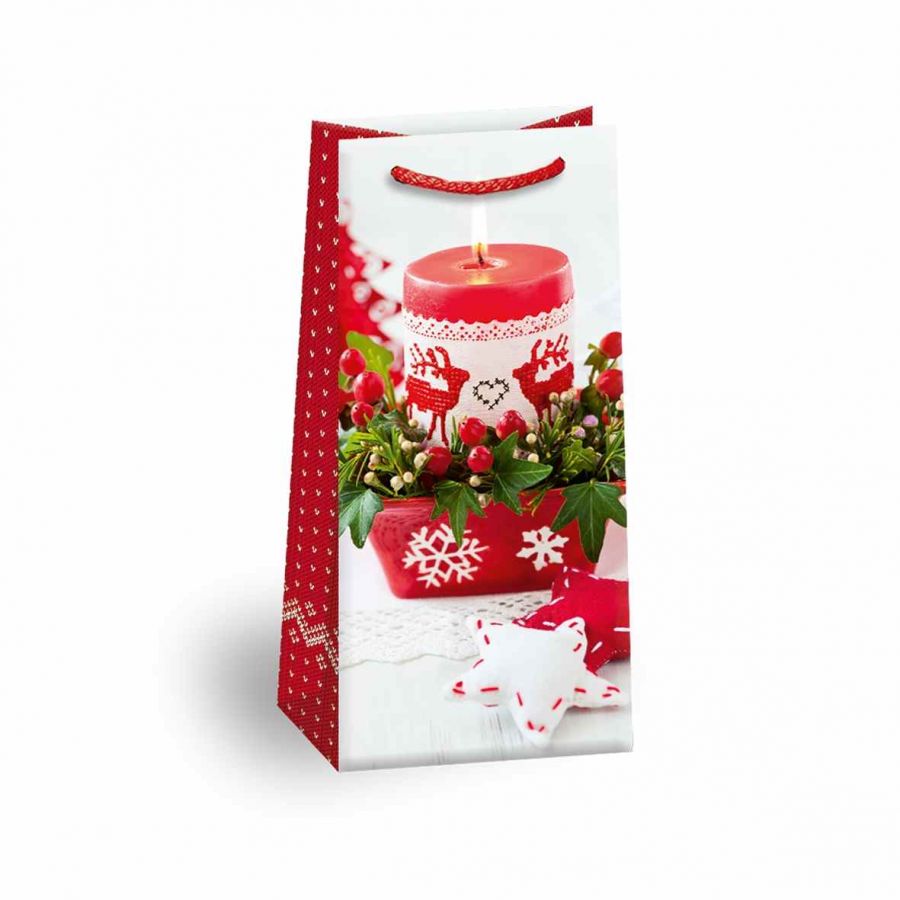 Lesklá vánoční papírová dárková taška s originálním designem. Vyrobená z kvalitního pevného papíru pro rychlé a praktické zabalení dárků všech velikostí. Kvalita zpracování zaručuje dostatečnou pevnost proti protržení dna nebo odtržení oušek.
