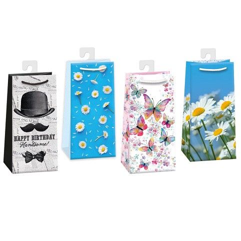 Papírová dárková taška s originálním designem. Vyrobená z kvalitního pevného papíru pro rychlé a praktické zabalení dárků všech velikostí. Kvalita zpracování zaručuje dostatečnou pevnost proti protržení dna nebo odtržení oušek. Na tašce je průsvitné plastové ouško, které slouží k uchycení tašky na prodejním stojanu. Po zakoupení je možné ho jednoduše odstřihnout.