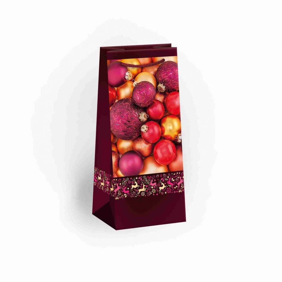 Lesklá vánoční papírová dárková taška s originálním designem. Vyrobená z kvalitního pevného papíru pro rychlé a praktické zabalení dárků všech velikostí. Kvalita zpracování zaručuje dostatečnou pevnost proti protržení dna nebo odtržení oušek. Na tašce je průsvitné plastové ouško, které slouží k uchycení tašky na prodejním stojanu. Po zakoupení je možné ho jednoduše odstřihnout.