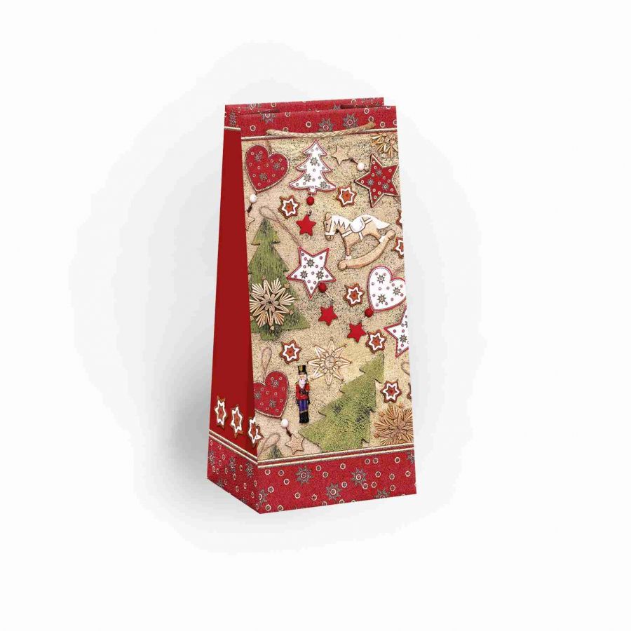 Matná vánoční papírová dárková taška s originálním designem. Vyrobená z kvalitního pevného papíru pro rychlé a praktické zabalení dárků všech velikostí. Kvalita zpracování zaručuje dostatečnou pevnost proti protržení dna nebo odtržení oušek. Na tašce je průsvitné plastové ouško, které slouží k uchycení tašky na prodejním stojanu. Po zakoupení je možné ho jednoduše odstřihnout.