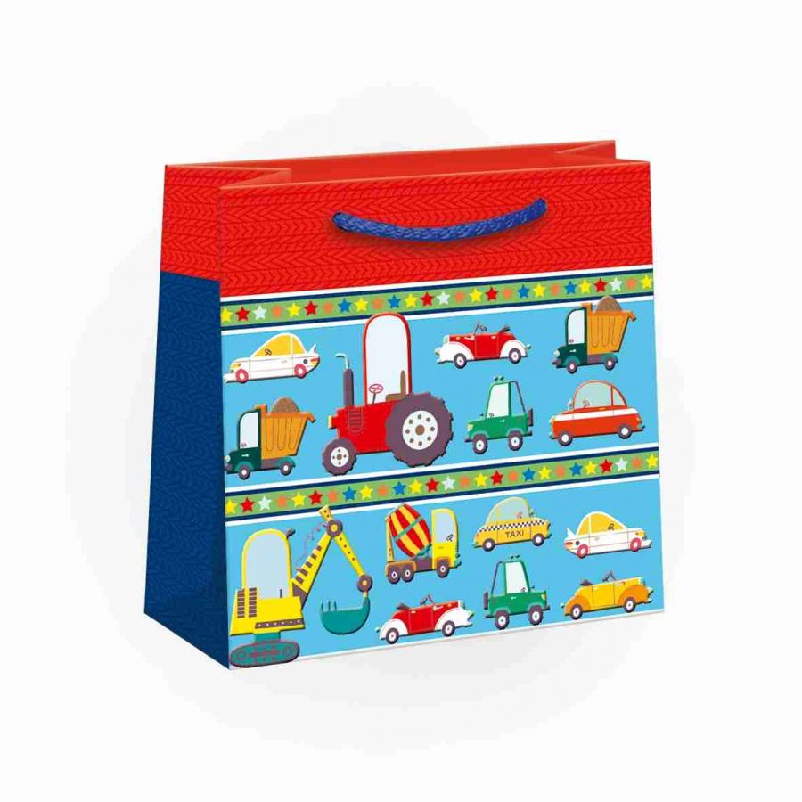 Lesklá papírová dárková taška s originálním dětským designem. Vyrobená z kvalitního pevného papíru pro rychlé a praktické zabalení dárků všech velikostí. Kvalita zpracování zaručuje dostatečnou pevnost proti protržení dna nebo odtržení oušek.