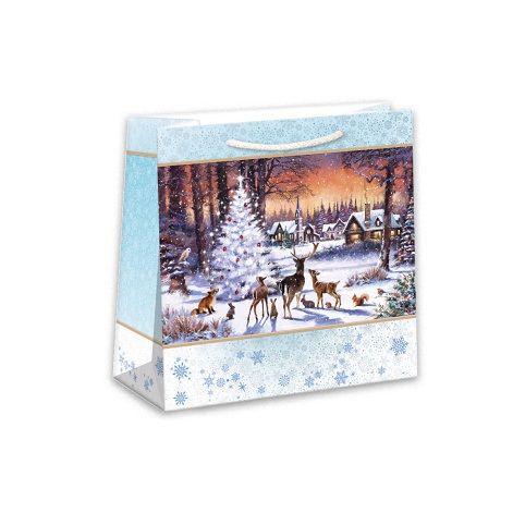 Lesklá vánoční papírová dárková taška s originálním designem. Vyrobená z kvalitního pevného papíru pro rychlé a praktické zabalení dárků všech velikostí. Kvalita zpracování zaručuje dostatečnou pevnost proti protržení dna nebo odtržení oušek. Na tašce je průsvitné plastové ouško, které slouží k uchycení tašky na prodejním stojanu. Po zakoupení je možné ho jednoduše odstřihnout.