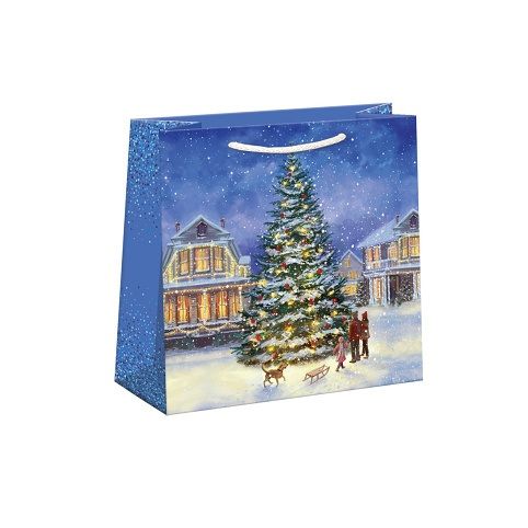 Lesklá vánoční papírová dárková taška s originálním designem. Vyrobená z kvalitního pevného papíru pro rychlé a praktické zabalení dárků všech velikostí. Kvalita zpracování zaručuje dostatečnou pevnost proti protržení dna nebo odtržení oušek. Na tašce je průsvitné plastové ouško, které slouží k uchycení tašky na prodejním stojanu. Po zakoupení je možné ho jednoduše odstřihnout.