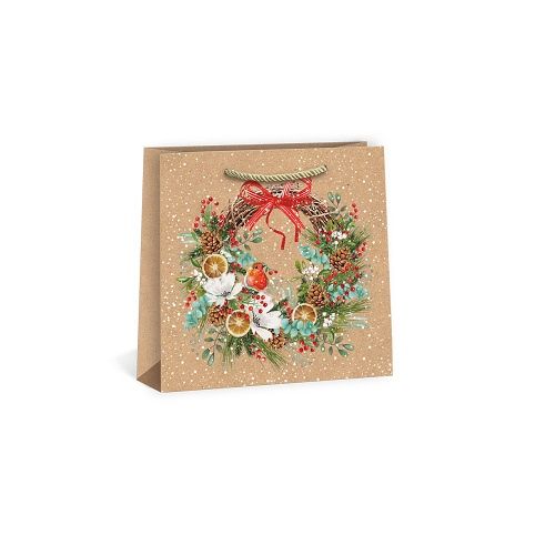 Vánoční přírodní dárková taška ve tvaru čtverce s jednoduchým, výrazným potiskem. Vyrobená z kvalitního pevného přírodního papíru pro rychlé a praktické zabalení dárků všech velikostí. Kvalita zpracování zaručuje dostatečnou pevnost proti protržení dna nebo odtržení oušek. Přírodní kraftový papír využíváme při několika našich výrobcích označených jako ECO FRIENDLY. ARGUS - Máme rádi přírodu!