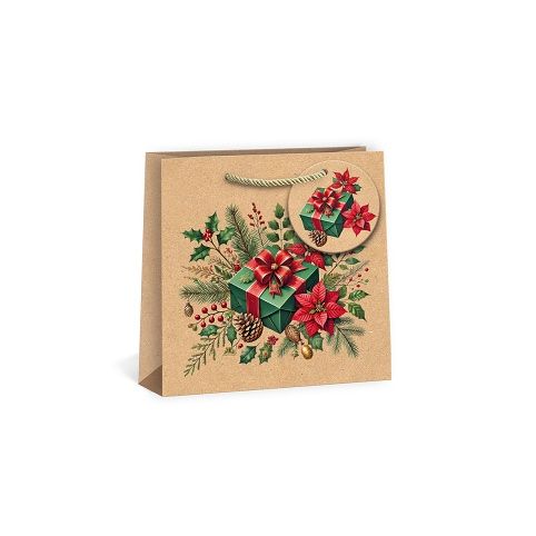 Vánoční přírodní dárková taška ve tvaru čtverce s jednoduchým, výrazným potiskem. * vyrobená z kvalitního pevného přírodního papíru pro rychlé a praktické zabalení dárků všech velikostí* kvalita zpracování zaručuje dostatečnou pevnost proti protržení dna nebo odtržení oušek* přírodní kraftový papír využíváme při několika našich výrobcích označených jako ECO FRIENDLY* ARGUS - Máme rádi přírodu!