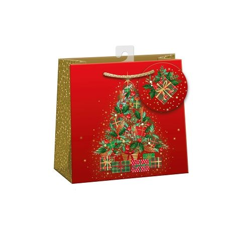 Luxusní vánoční papírová dárková taška LUX s originálním designem na víno nebo šampaňské.* pro rychlé a praktické zabalení* kvalita zpracování zaručuje dostatečnou pevnost proti protržení dna nebo odtržení oušek* na tašce je průsvitné ouško, které slouží k uchchycení tašky na prodejnom stojanu. Po zakoupení je možné ho jednoduše odstřihnout