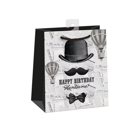 Papírová dárková taška standard s háčkem a originálním designem. Vyrobená z kvalitního pevného papíru pro rychlé a praktické zabalení dárků všech velikostí. Kvalita zpracování zaručuje dostatečnou pevnost proti protržení dna nebo odtržení oušek. Háček slouží k umístění do stojanů v prodejnách. Po zakoupení jej lze jednoduše odstřihnout.
