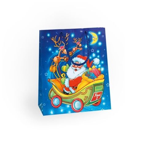 Lesklá vánoční papírová dárková taška s originálním designem. Vyrobená z kvalitního pevného papíru pro rychlé a praktické zabalení dárků všech velikostí. Kvalita zpracování zaručuje dostatečnou pevnost proti protržení dna nebo odtržení oušek.