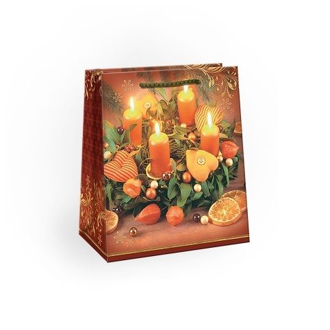 Lesklá vánoční papírová dárková taška s originálním designem. Vyrobená z kvalitního pevného papíru pro rychlé a praktické zabalení dárků všech velikostí. Kvalita zpracování zaručuje dostatečnou pevnost proti protržení dna nebo odtržení oušek.