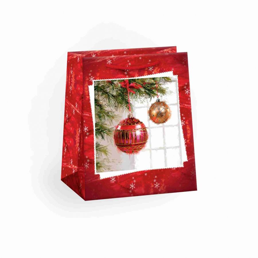 Lesklá vánoční papírová dárková taška s originálním designem. Vyrobená z kvalitního pevného papíru pro rychlé a praktické zabalení dárků všech velikostí. Kvalita zpracování zaručuje dostatečnou pevnost proti protržení dna nebo odtržení oušek.