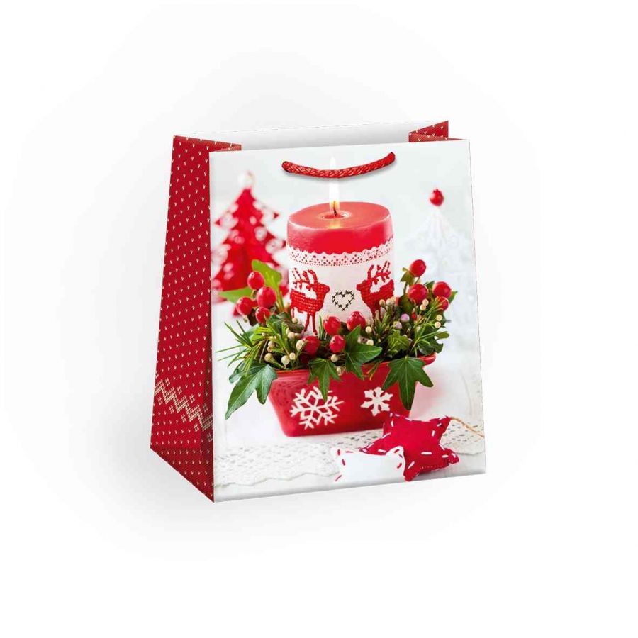 Lesklá vánoční papírová dárková taška s originálním designem. Vyrobená z kvalitního pevného papíru pro rychlé a praktické zabalení dárků všech velikostí. Kvalita zpracování zaručuje dostatečnou pevnost proti protržení dna nebo odtržení oušek.