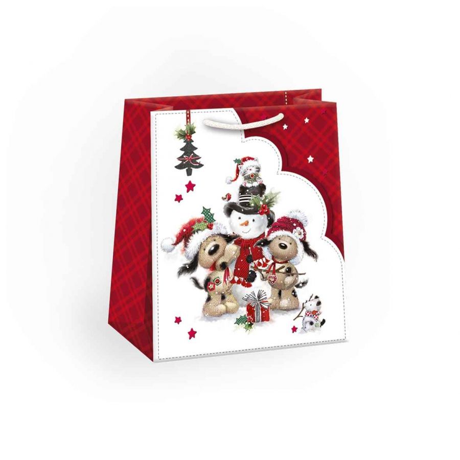 Vánoční papírová dárková taška s originálním designem. Vyrobená z kvalitního pevného papíru pro rychlé a praktické zabalení dárků všech velikostí. Kvalita zpracování zaručuje dostatečnou pevnost proti protržení dna nebo odtržení oušek.