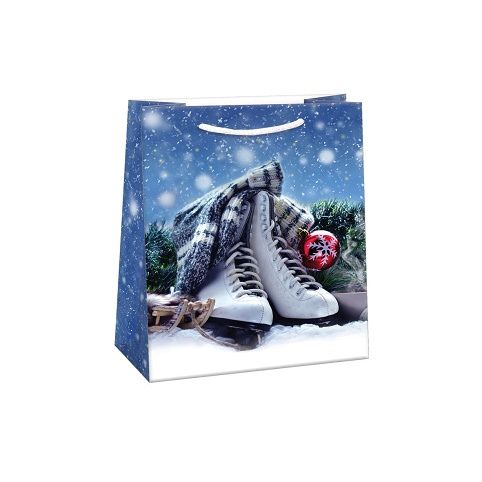 Lesklá vánoční papírová dárková taška s originálním designem. Vyrobená z kvalitního pevného papíru pro rychlé a praktické zabalení dárků všech velikostí. Kvalita zpracování zaručuje dostatečnou pevnost proti protržení dna nebo odtržení oušek. Na tašce je průsvitné plastové ouško, které slouží k uchycení tašky na prodejním stojanu. Po zakoupení je možné ho jednoduše odstřihnout.