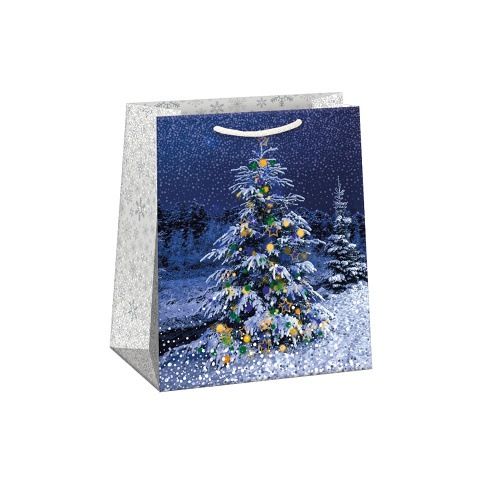 Lesklá vánoční papírová dárková taška s originálním designem. Vyrobená z kvalitního pevného papíru pro rychlé a praktické zabalení dárků všech velikostí. Kvalita zpracování zaručuje dostatečnou pevnost proti protržení dna nebo odtržení oušek. Na tašce je průsvitné plastové ouško, které slouží k uchycení tašky na prodejním stojanu. Po zakoupení je možné ho jednoduše odstřihnout.