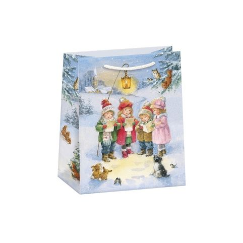 Lesklá vánoční papírová dárková taška s originálním designem. Vyrobená z kvalitního pevného papíru pro rychlé a praktické zabalení dárků všech velikostí. Kvalita zpracování zaručuje dostatečnou pevnost proti protržení dna nebo odtržení oušek.