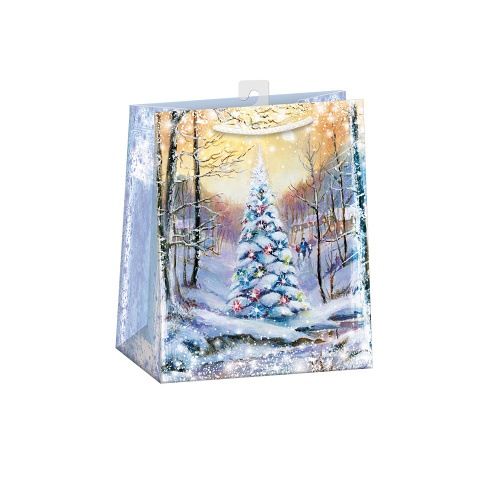 Matná vánoční papírová dárková taška s originálním designem. Vyrobená z kvalitního pevného papíru pro rychlé a praktické zabalení dárků všech velikostí. Kvalita zpracování zaručuje dostatečnou pevnost proti protržení dna nebo odtržení oušek. Na tašce je průsvitné plastové ouško, které slouží k uchycení tašky na prodejním stojanu. Po zakoupení je možné ho jednoduše odstřihnout.