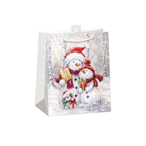 Vánoční papírová dárková taška s originálním designem. Vyrobená z kvalitního pevného papíru pro rychlé a praktické zabalení dárků všech velikostí. Kvalita zpracování zaručuje dostatečnou pevnost proti protržení dna nebo odtržení oušek. Na tašce je průsvitné plastové ouško, které slouží k uchycení tašky na prodejním stojanu. Po zakoupení je možné ho jednoduše odstřihnout.