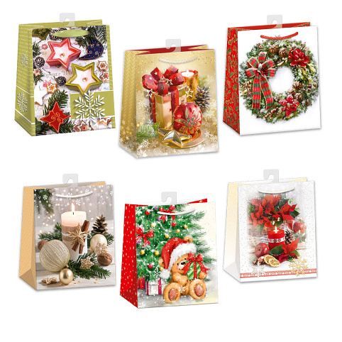 Vánoční papírová dárková taška s originálním designem. Vyrobená z kvalitního pevného papíru pro rychlé a praktické zabalení dárků všech velikostí. Kvalita zpracování zaručuje dostatečnou pevnost proti protržení dna nebo odtržení oušek. Na tašce je průsvitné plastové ouško, které slouží k uchycení tašky na prodejním stojanu. Po zakoupení je možné ho jednoduše odstřihnout.