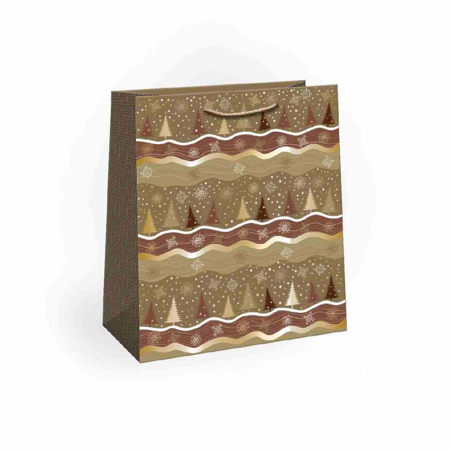 Luxusní vánoční papírová dárková taška s originálním designem. Vyrobená z kvalitního pevného papíru pro rychlé a praktické zabalení dárků všech velikostí. Kvalita zpracování zaručuje dostatečnou pevnost proti protržení dna nebo odtržení oušek.