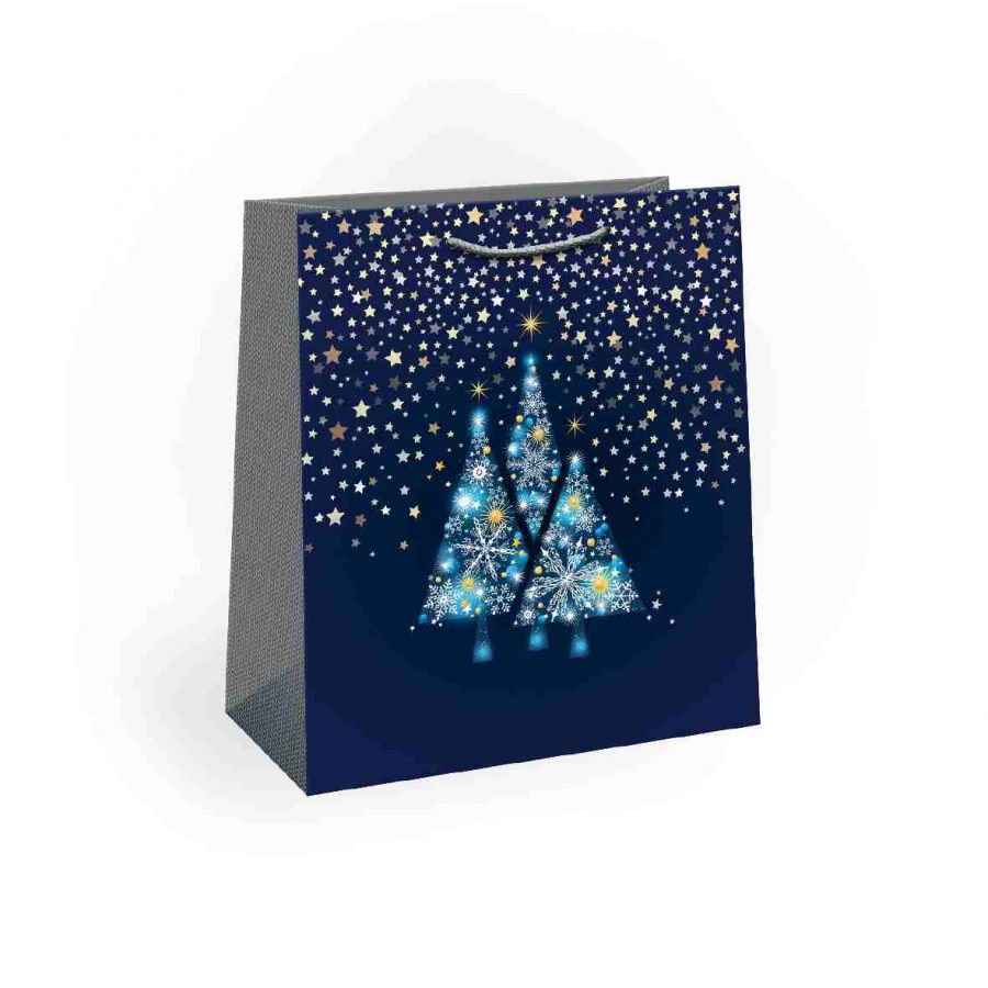 Vánoční papírová dárková taška s originálním designem. Vyrobená z kvalitního pevného papíru pro rychlé a praktické zabalení dárků všech velikostí. Kvalita zpracování zaručuje dostatečnou pevnost proti protržení dna nebo odtržení oušek.
