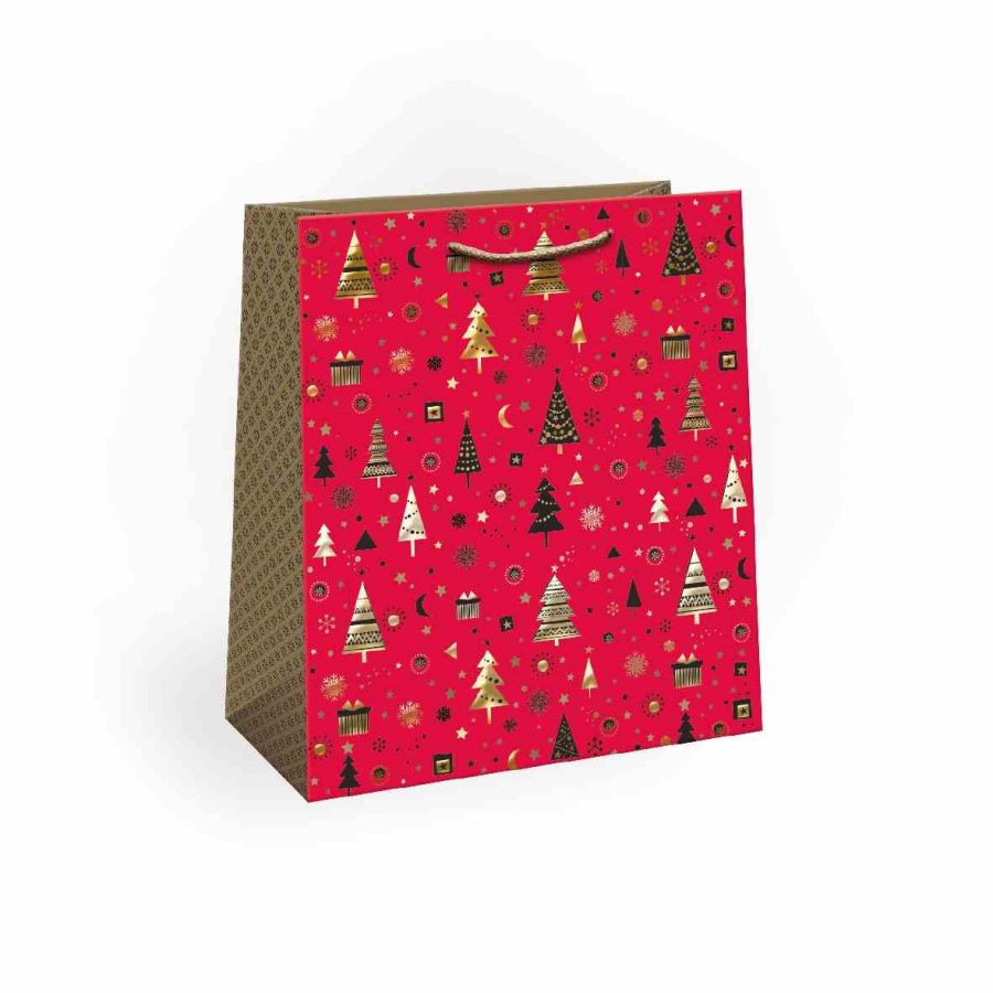 Vánoční papírová dárková taška s originálním designem. Vyrobená z kvalitního pevného papíru pro rychlé a praktické zabalení dárků všech velikostí. Kvalita zpracování zaručuje dostatečnou pevnost proti protržení dna nebo odtržení oušek.