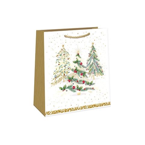 Luxusní vánoční papírová dárková taška s originálním designem. Vyrobená z kvalitního pevného papíru pro rychlé a praktické zabalení dárků všech velikostí. Kvalita zpracování zaručuje dostatečnou pevnost proti protržení dna nebo odtržení oušek.