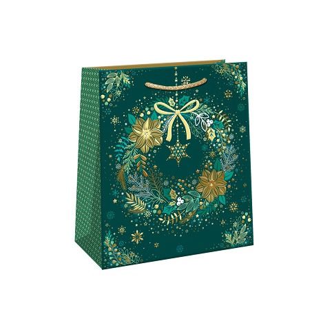 Luxusní vánoční papírová dárková taška s originálním designem. Vyrobená z kvalitního pevného papíru pro rychlé a praktické zabalení dárků. Kvalita zpracování zaručuje dostatečnou pevnost proti protržení dna nebo odtržení oušek.