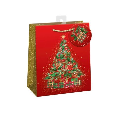 Luxusní vánoční papírová dárková taška LUX s originálním designem na víno nebo šampaňské.* pro rychlé a praktické zabalení* kvalita zpracování zaručuje dostatečnou pevnost proti protržení dna nebo odtržení oušek* na tašce je průsvitné ouško, které slouží k uchchycení tašky na prodejnom stojanu. Po zakoupení je možné ho jednoduše odstřihnout
